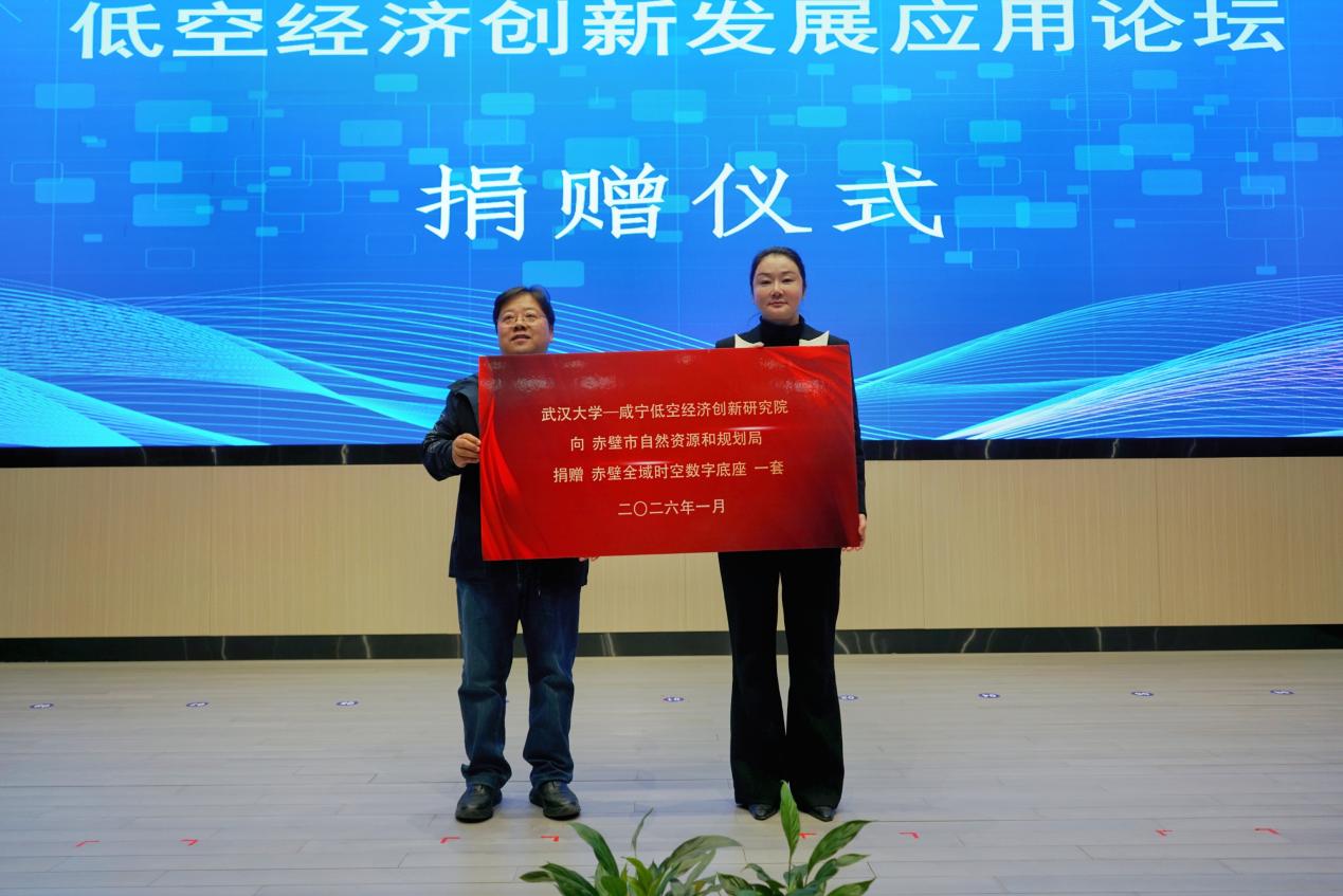 1月17日上午,“低空经济创新发展应用论坛”在中试谷赤壁基地成功举办,在各级领导、来宾的见证下,武汉大学-咸宁低空经济创新研究院向赤壁市局捐赠“赤壁市全域时空数字底座”,此举标志着赤壁市在推进数字化转型、提升城市精细化治理与科学决策能力方面迈出了坚实一步。